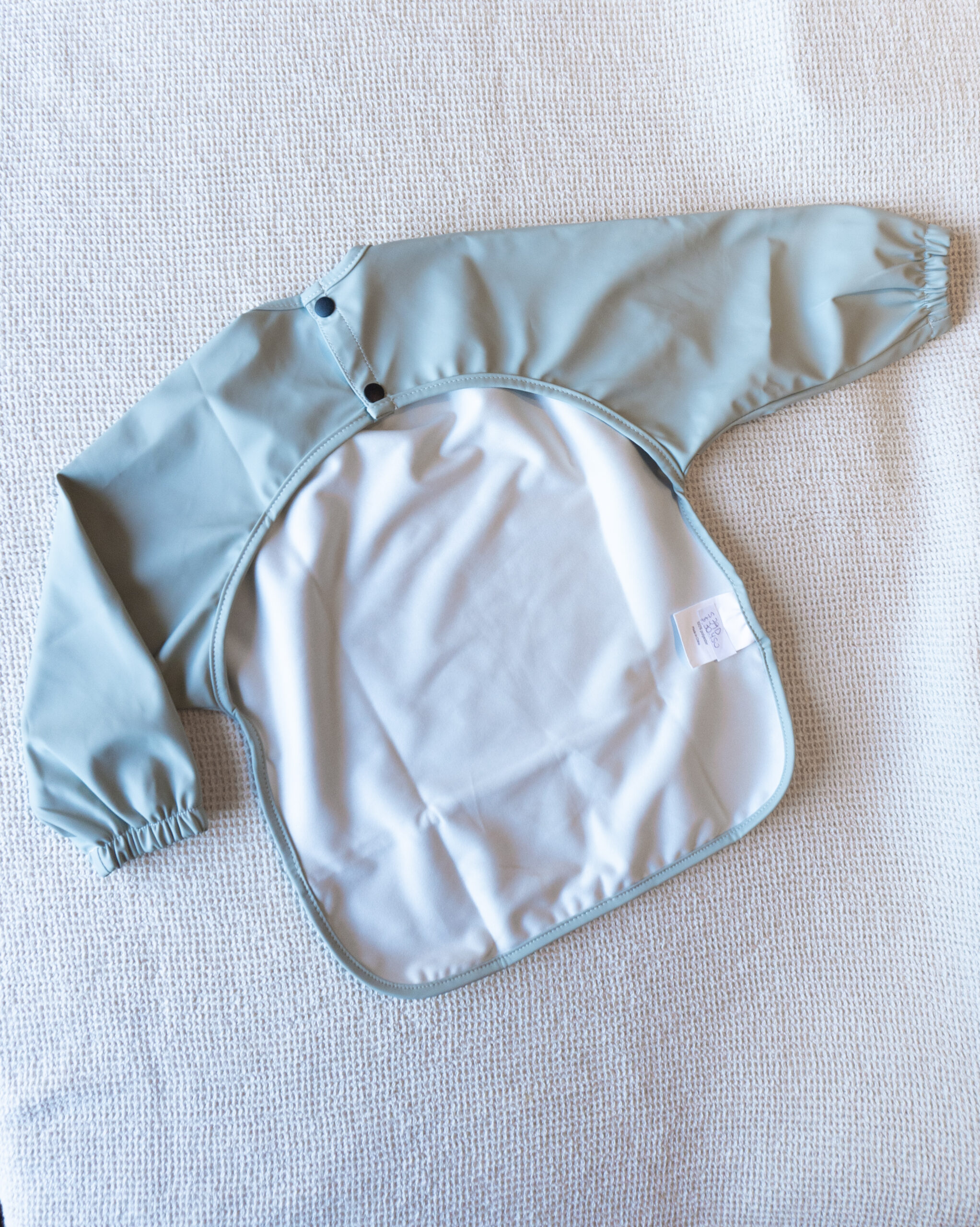 Nuestro babero delantal impermeable con mangas es el aliado ideal para la hora de comer, jugar o pintar. Su diseño de cobertura completa protege totalmente la ropa del bebé, evitando manchas y derrames.