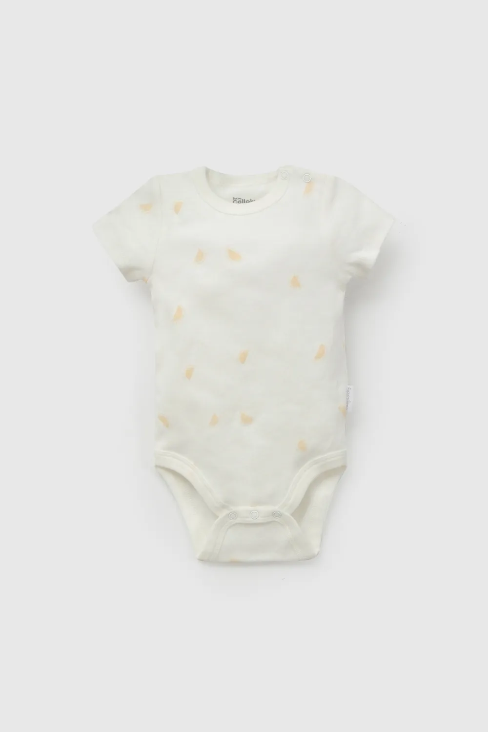 Bodie manga corta confeccionado en algodón suave, fresco y respirable. Cuenta con broches en el hombro y en la entrepierna para facilitar el cambio. Disponible en diferentes colores y estampas delicadas. Prenda importada de estilo europeo, ideal para uso diario.