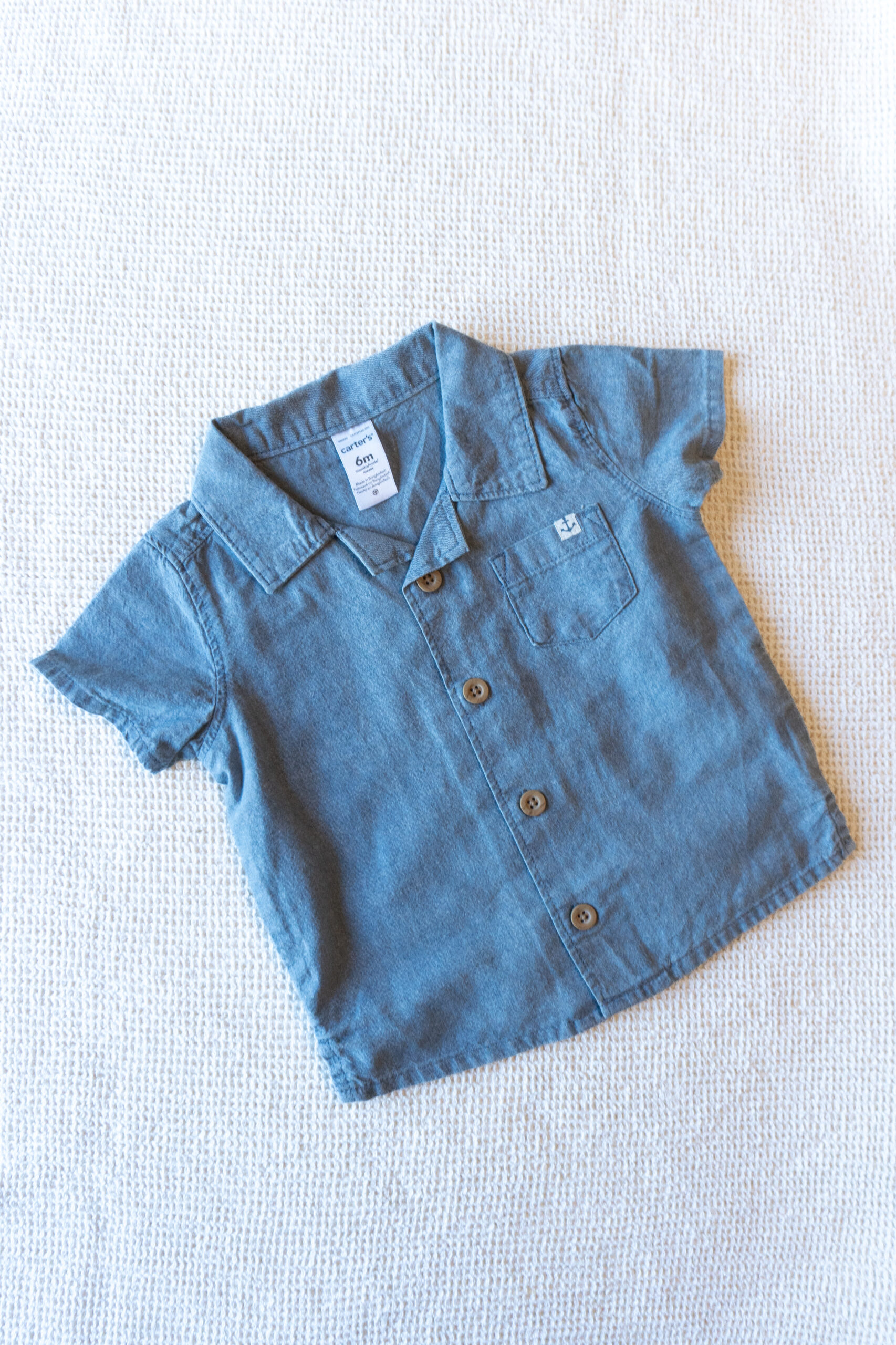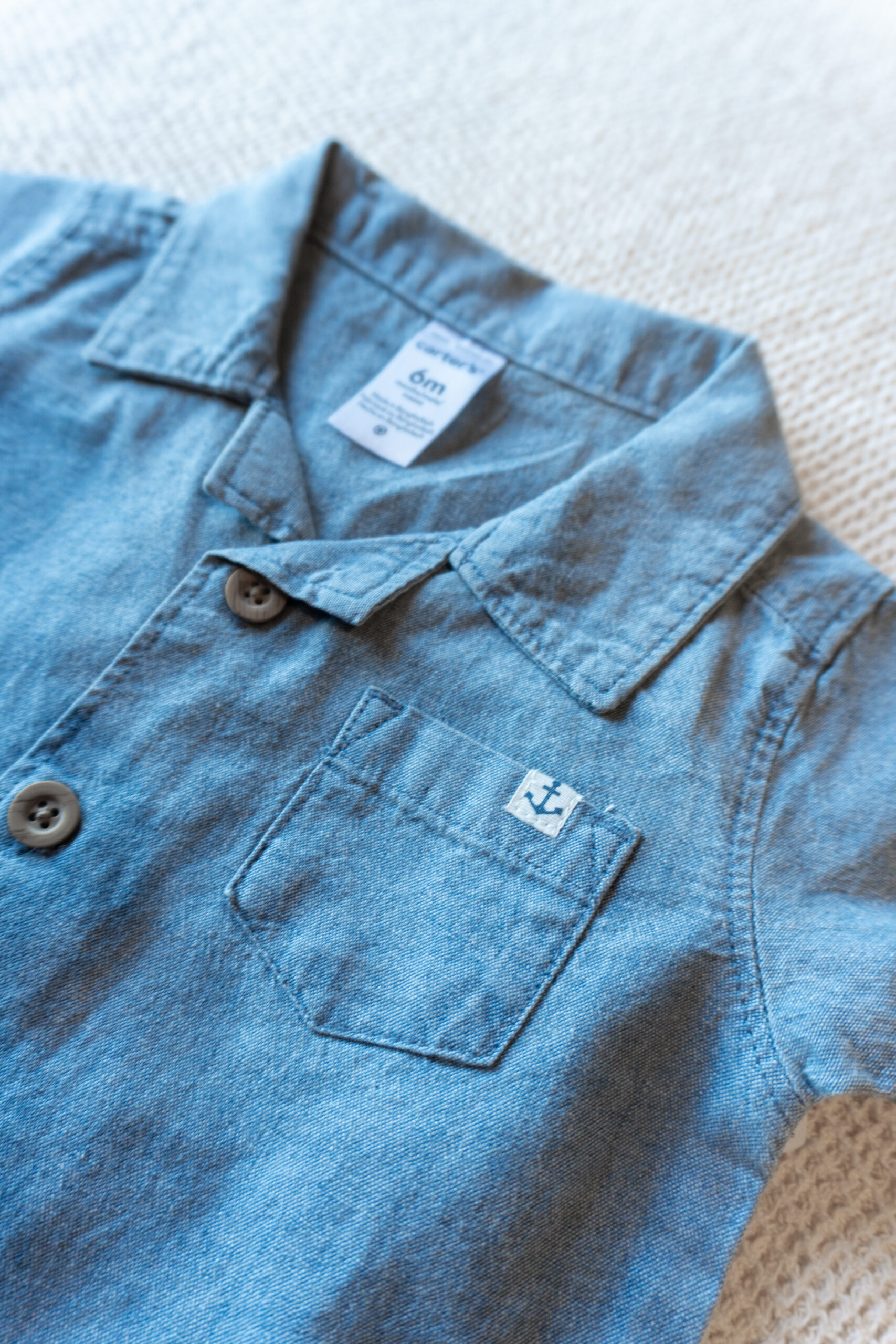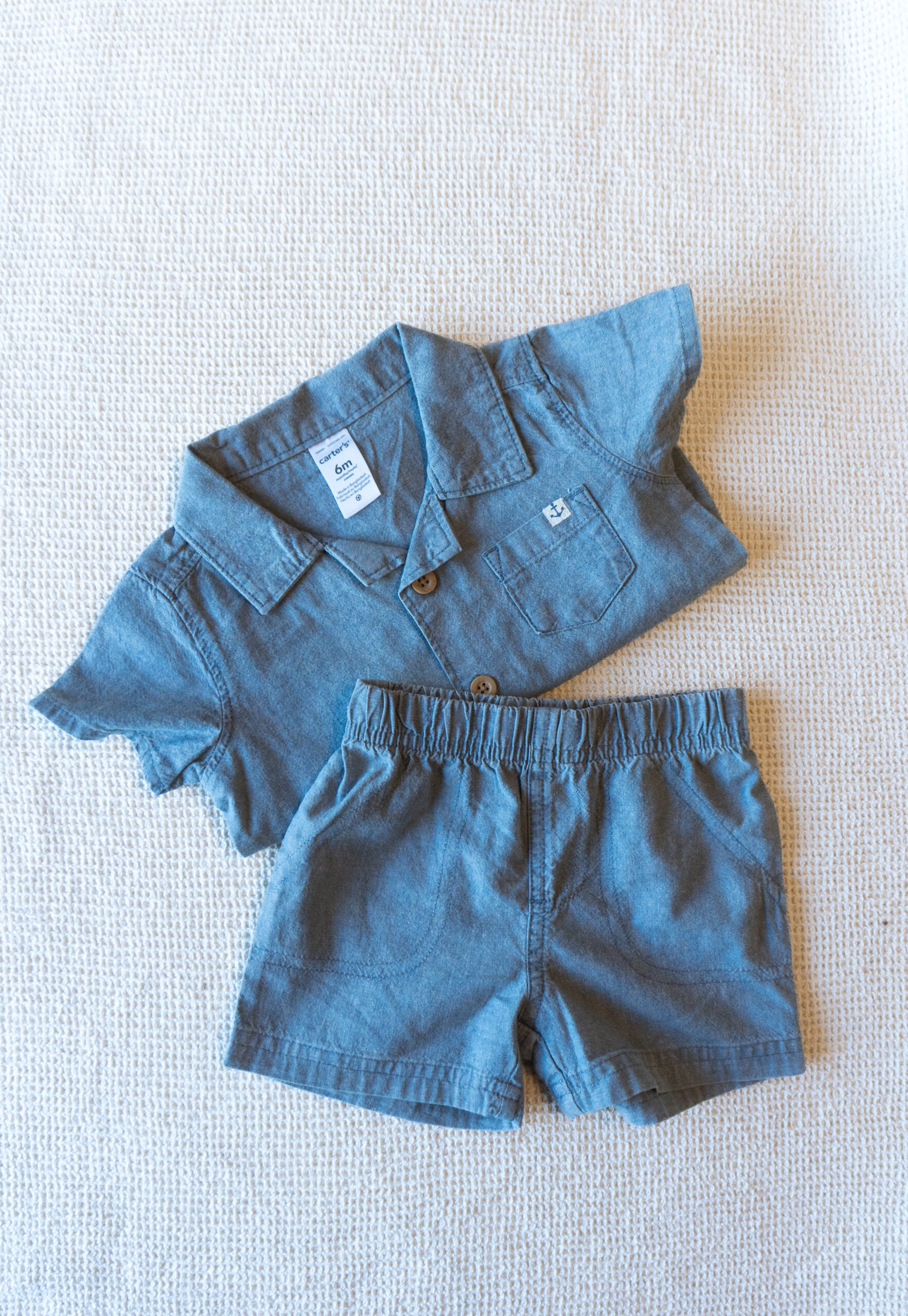 Conjunto Carter’s de denim liviano: camisa + short, suave, fresco y cómodo para tu bebé.