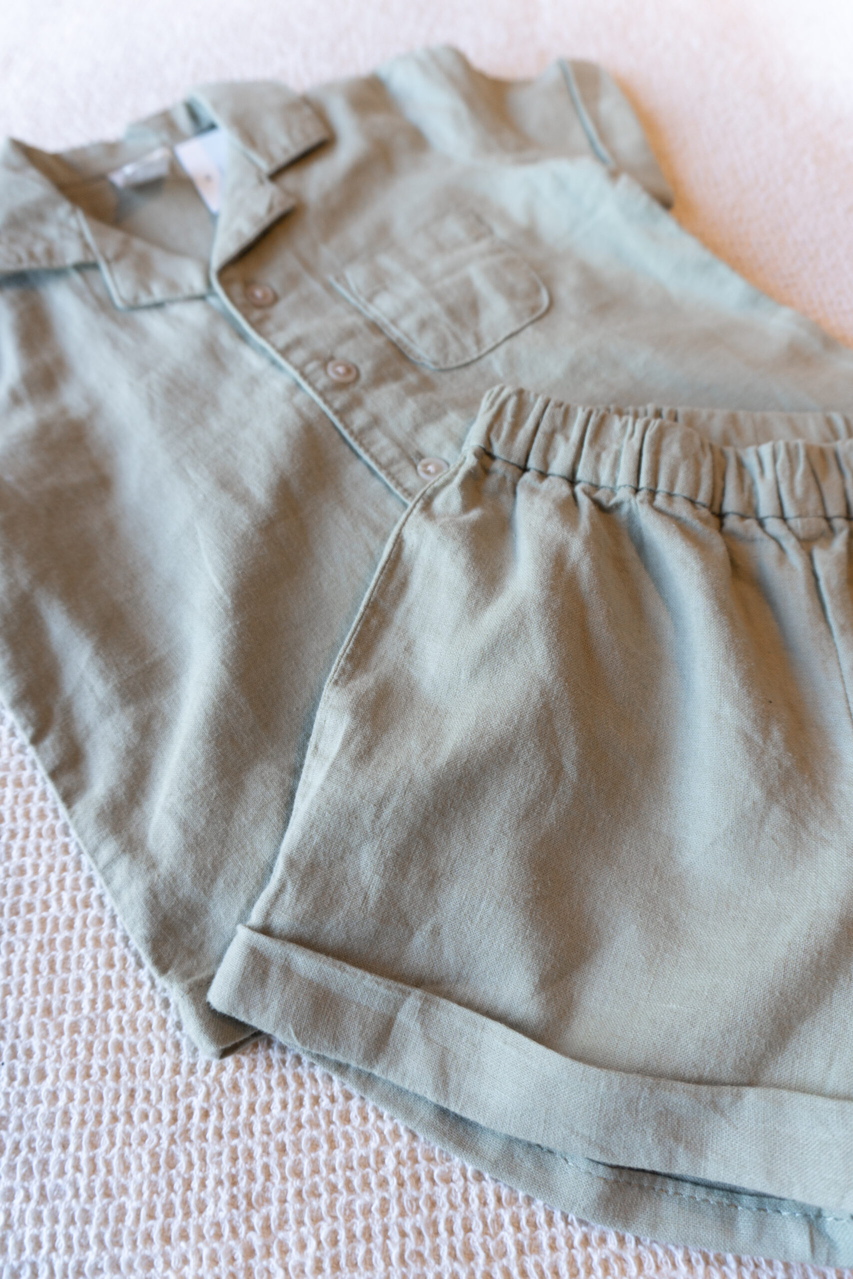 Conjunto fresco y cómodo en color verde oliva, con camisa camisera y short a juego. Perfecto para los días de calor. ¡Suave, canchero y combinable! 🌿✨