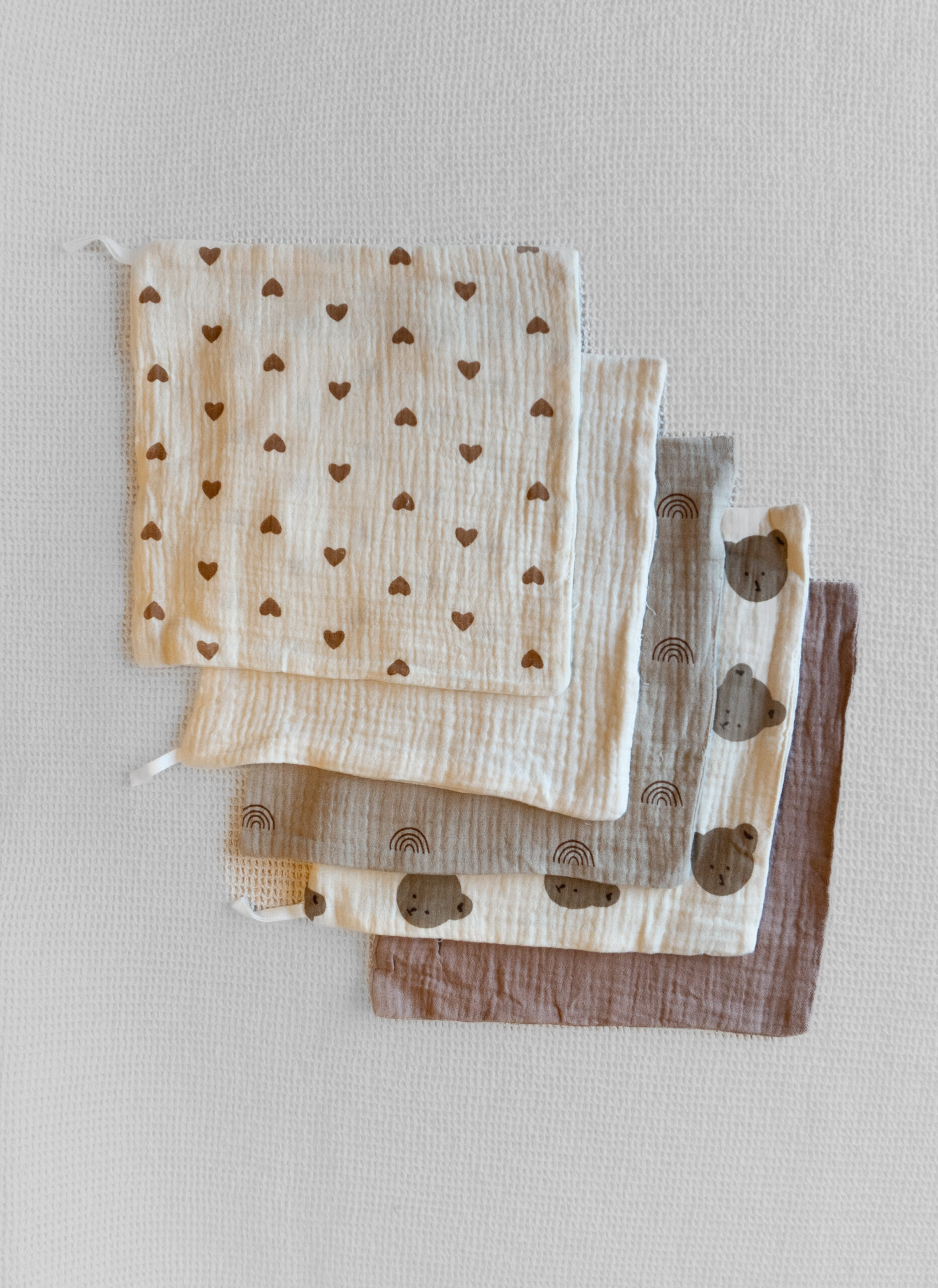 Nuestras gasitas de muselina están pensadas para acompañar cada momento de tu bebé: para limpiar, para apoyar en el hombro, para el cochecito o simplemente para tener siempre a mano. Están confeccionadas con muselina premium, un tejido suave, respirable y delicado con la piel sensible. Vienen en tonos neutros y estampas tiernas que se adaptan a cualquier estilo.