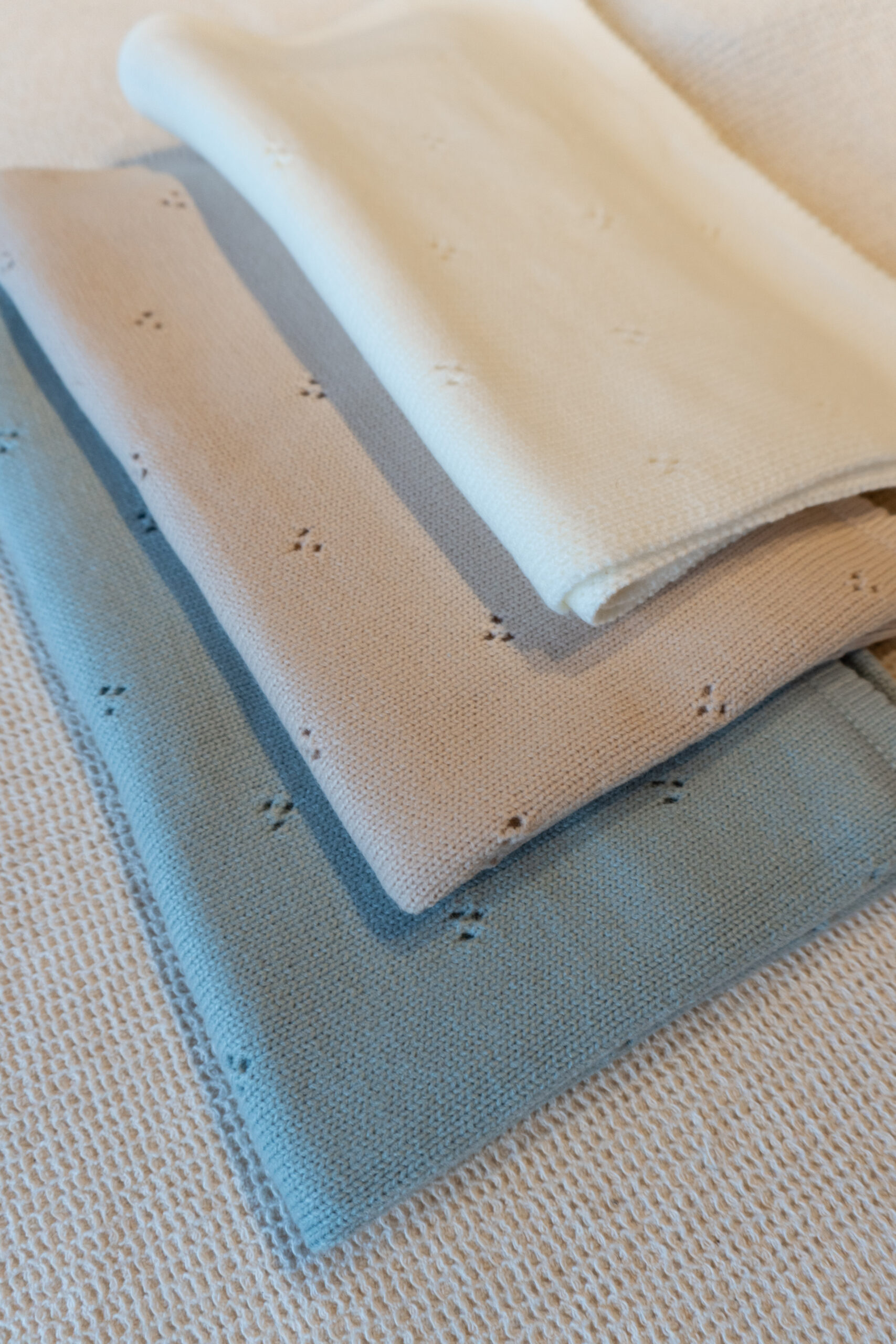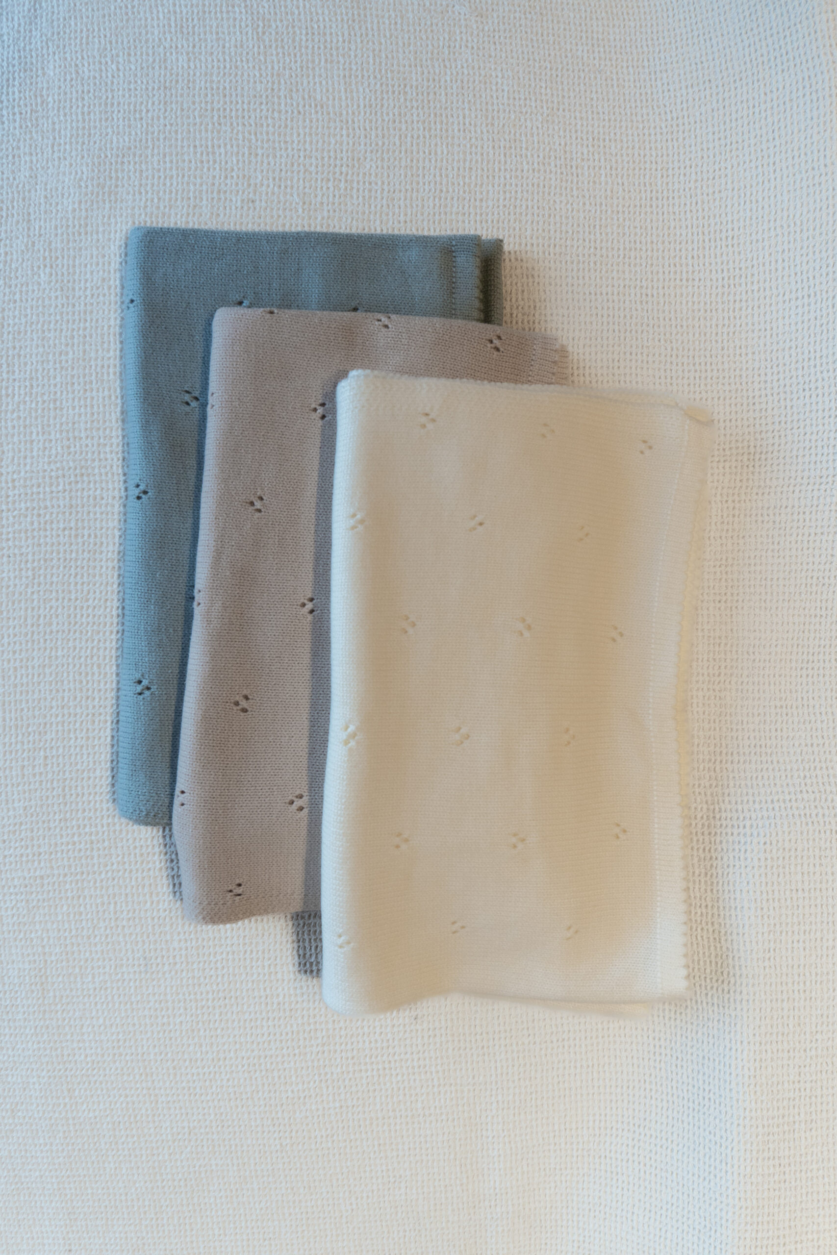Nuestra manta tejida calada es un esencial para acompañar a tu bebé en todo momento. Su tejido suave, liviano y con diseño perforado la hace perfecta para usar en cochecito, moisés, huevito o como mantita de apego.