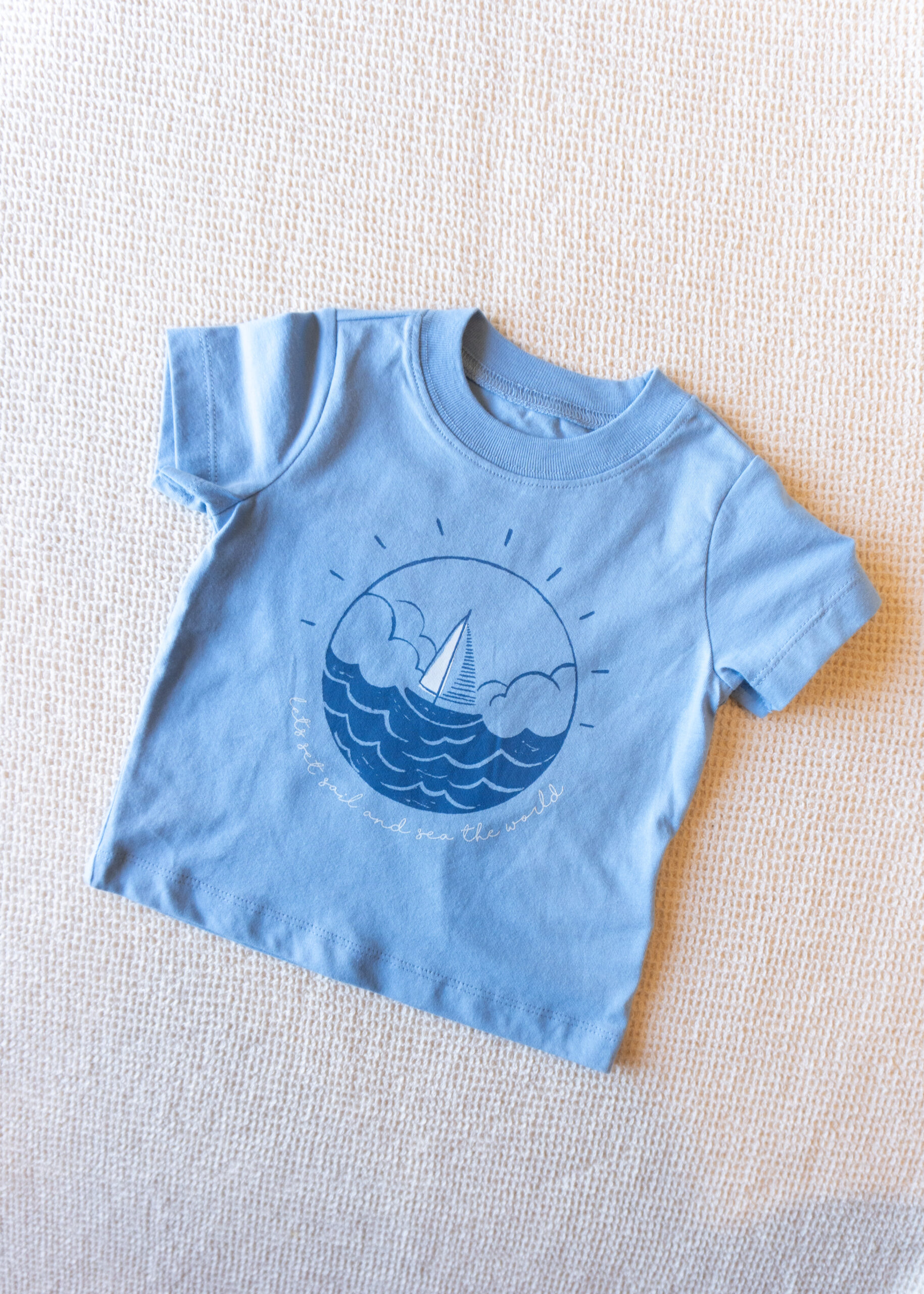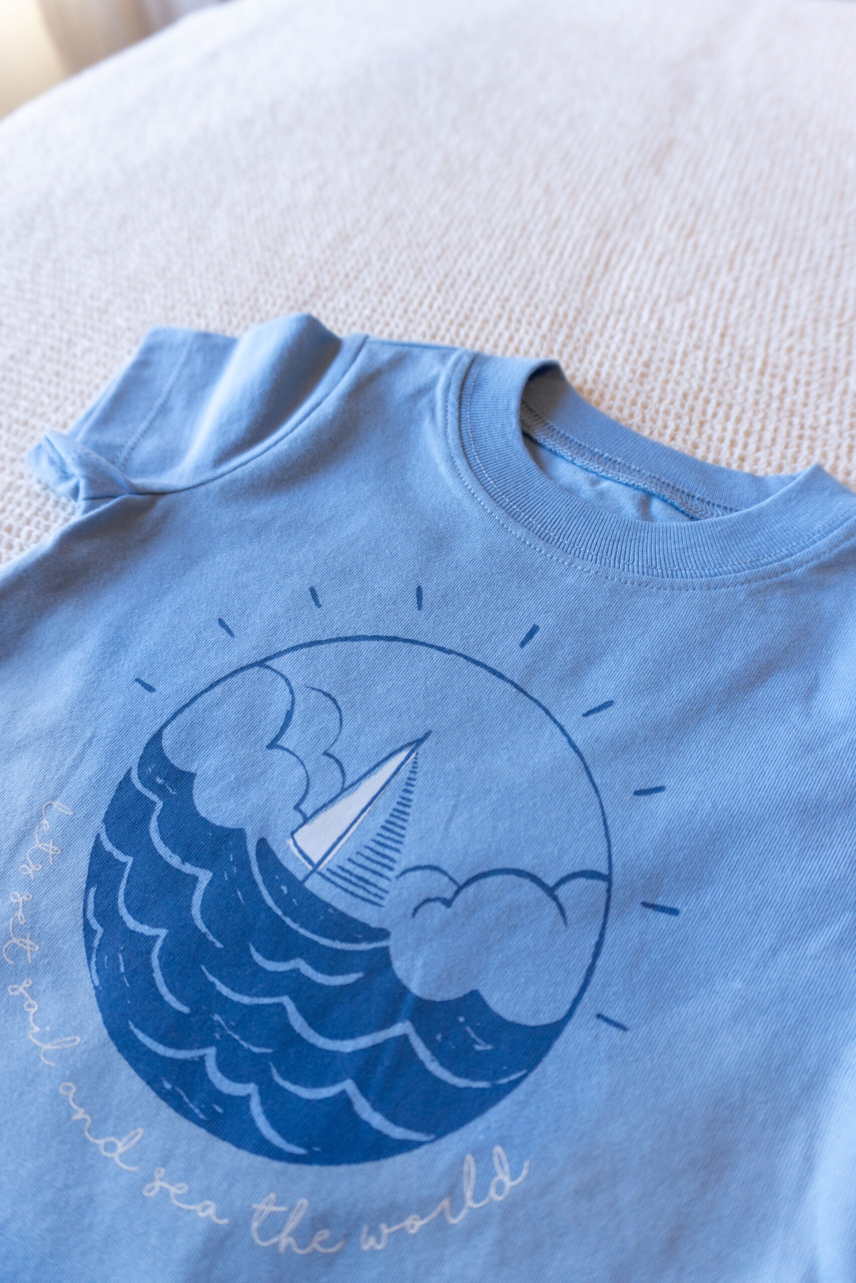 Remera fresca de algodón con diseño náutico: barco sobre olas y sol. Suave, cómoda y perfecta para días al aire libre. Ideal para looks veraniegos.