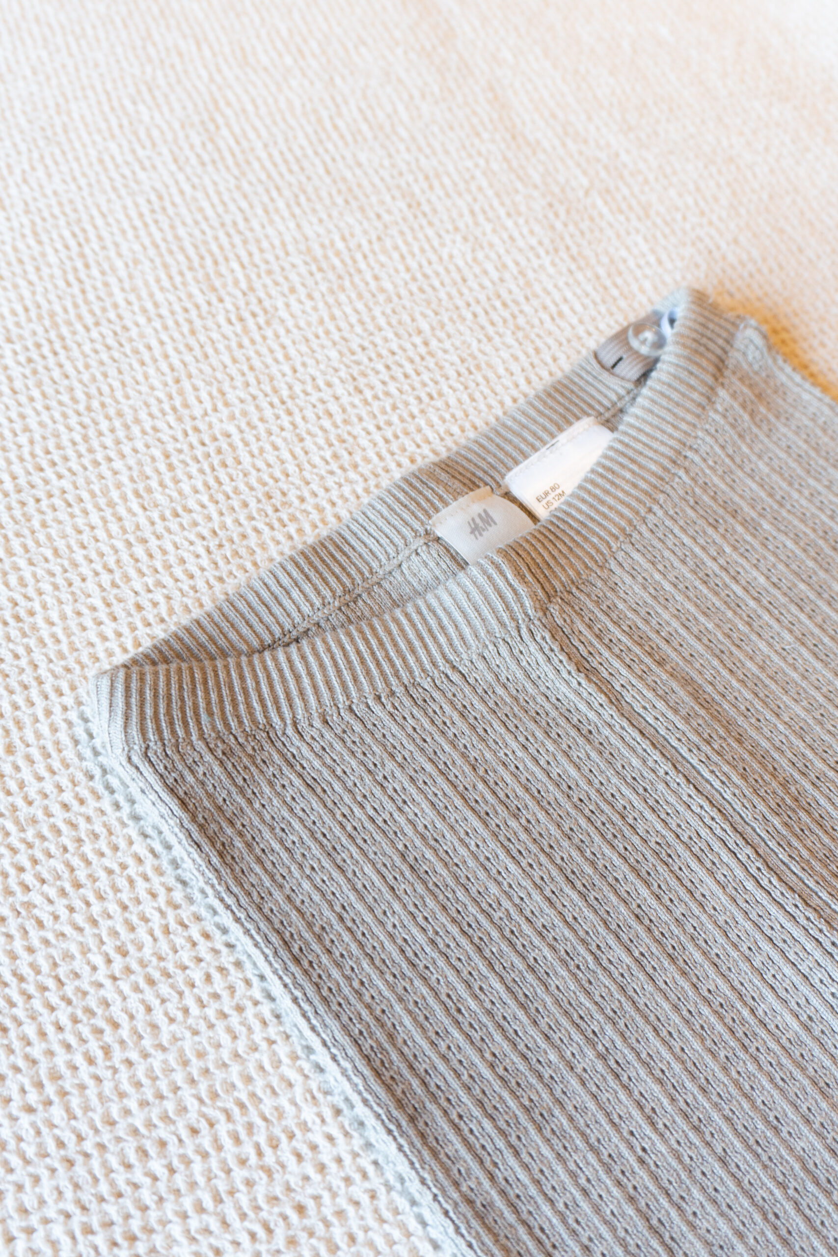 Set tejido gris de dos piezas, cómodo y delicado, perfecto para mantener a tu bebé abrigado con estilo. El sweater cuenta con voladitos en los hombros y botones en el hombro para vestir más fácil. El pantalón es elastizado y acompaña todos los movimientos.